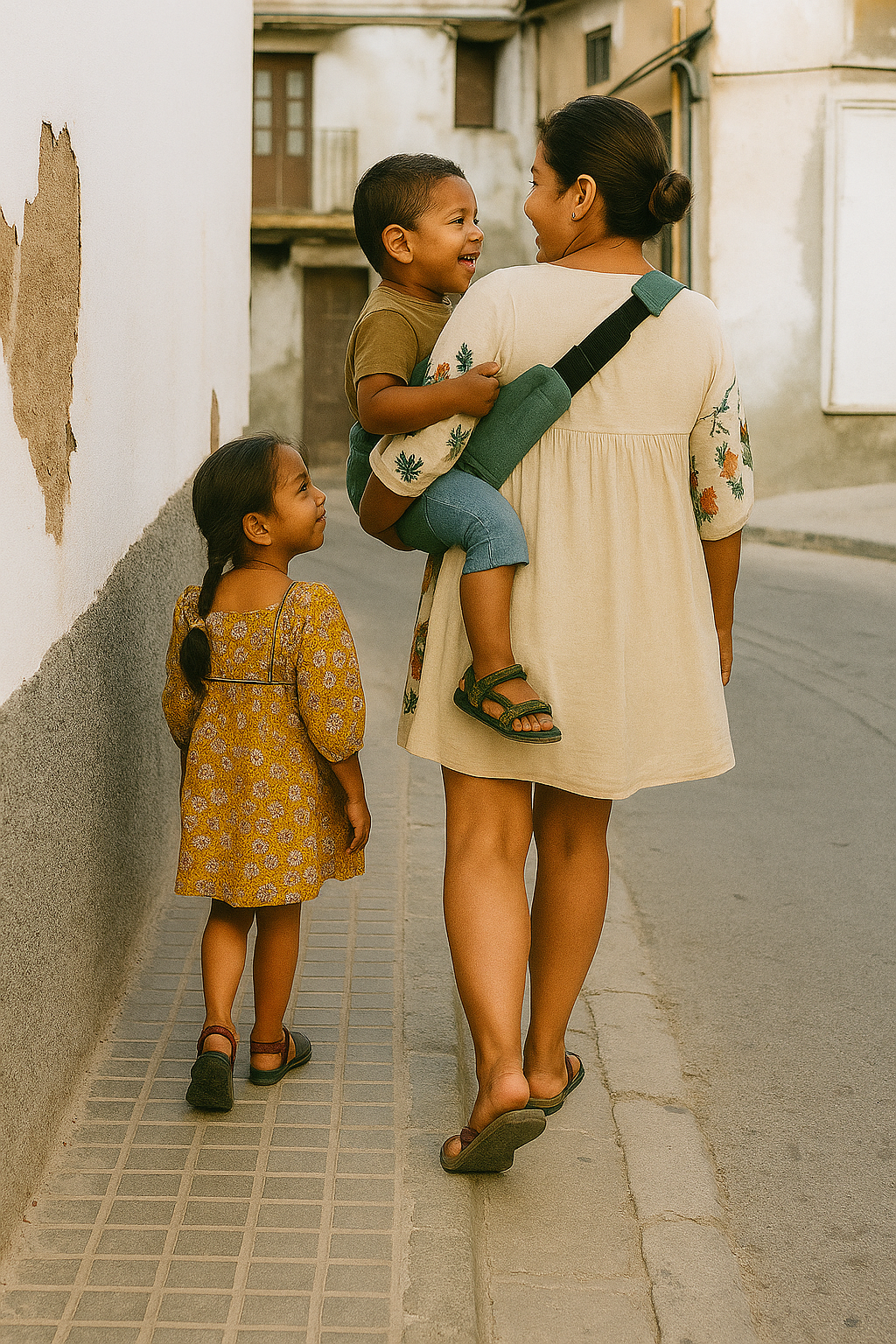 Todo comenzó en Colombia, durante un paseo familiar por las montañas. Una mamá, cargando a su pequeño en brazos, sentía el cansancio de los caminos largos y la dificultad de llevarlo de manera cómoda y segura. Fue en ese momento, entre risas, pausas y la calidez del paisaje, que nació la idea: ¿y si existiera una forma más práctica y ergonómica de cargar a los niños sin perder la cercanía?